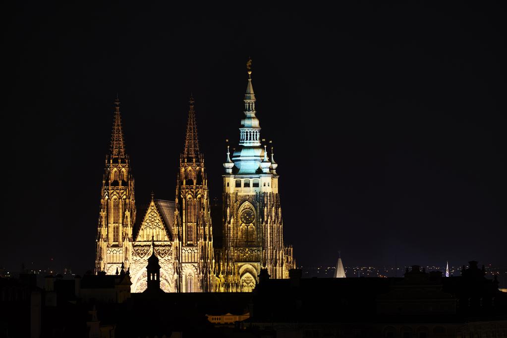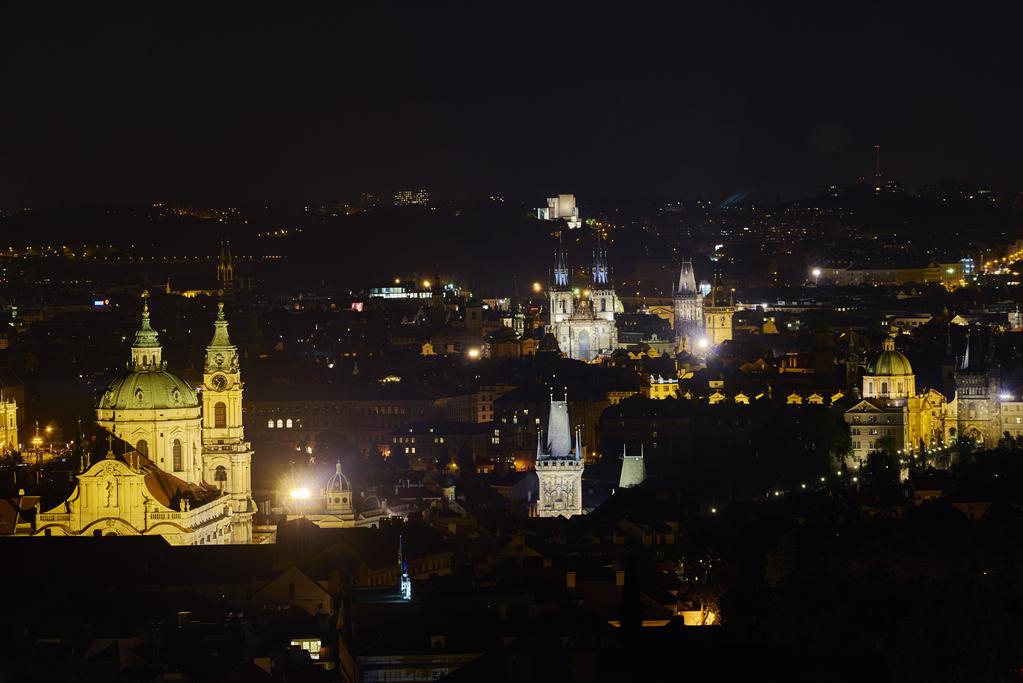 この広場からの夜景撮影は望遠レンズがお勧めです。被写体となる大部分は暗い一方で、ライトアップされているエリアは限定されているため、望遠でその部分を切り取ることで、印象的な写真を撮影出来ます。特にプラハ城は手前に暗い建築物があるため、コントラストとして取り入れることでこのような写真を撮影出来ます。